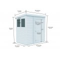 The tongue and groove construction we use in the F&F 7ft x 4ft Pent Security Sheds is a much more substantial design than your normal overlap cladding, utilising thicker material for an overall stronger structure. with its interlocking tongue and groove design you can guarantee this will stop rain water from entering the building. With its heavy duty floor you have also the peace of mind that you wont be restricted to storing the heavier of goods within. These sheds are the ultimate garden storage building which will suit all your needs.